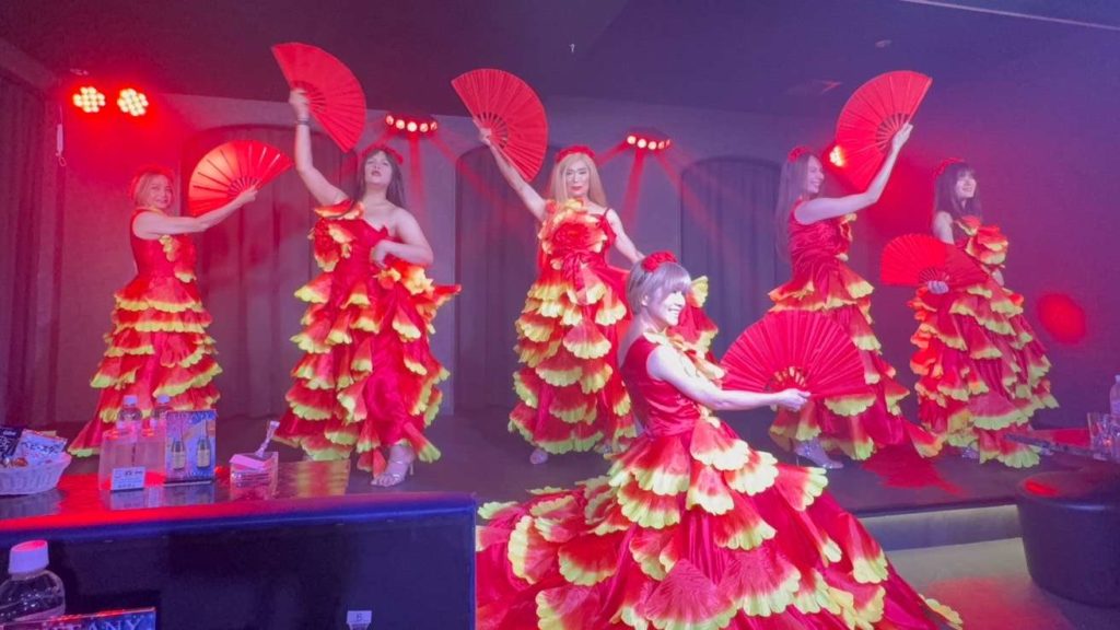 当店のショーは、華やかなダンスや歌唱など、エンターテインメント性あふれるステージです。個性豊かなニューハーフキャストたちが、それぞれの魅力を生かした演目でお客様をお迎えします。
